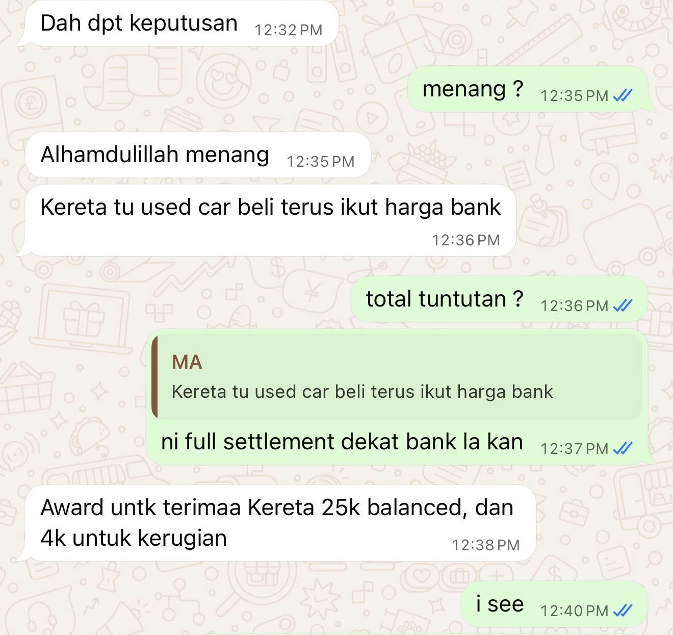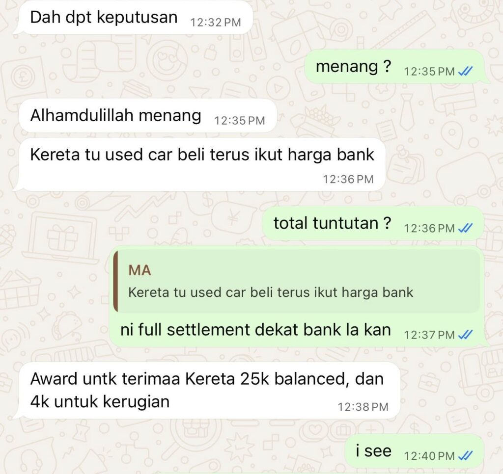Alhamdulillah kemenangan lagi untuk mangsa penipuan beli kereta kemalangan