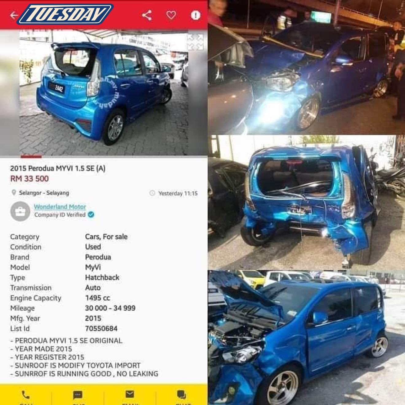 “Bang,kereta ni pernah kemalangan tapi dah dijual semula di applikasi ****H.MY.”