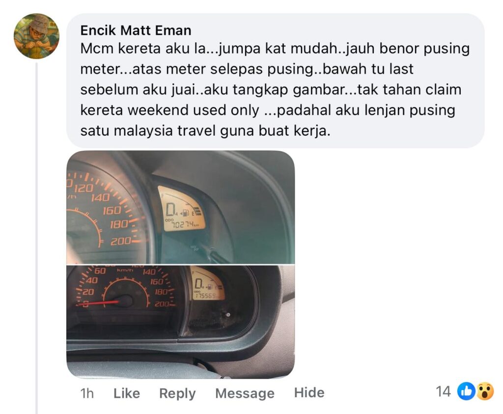 Panas! Di hantaran Bro SCRUT semalam ada seorang hamba Allah ini yang ‘kantoikan’ penjual kereta dengan tangkap layar gambar odometer sebelum dia jual kereta ni dan selepas dijual.