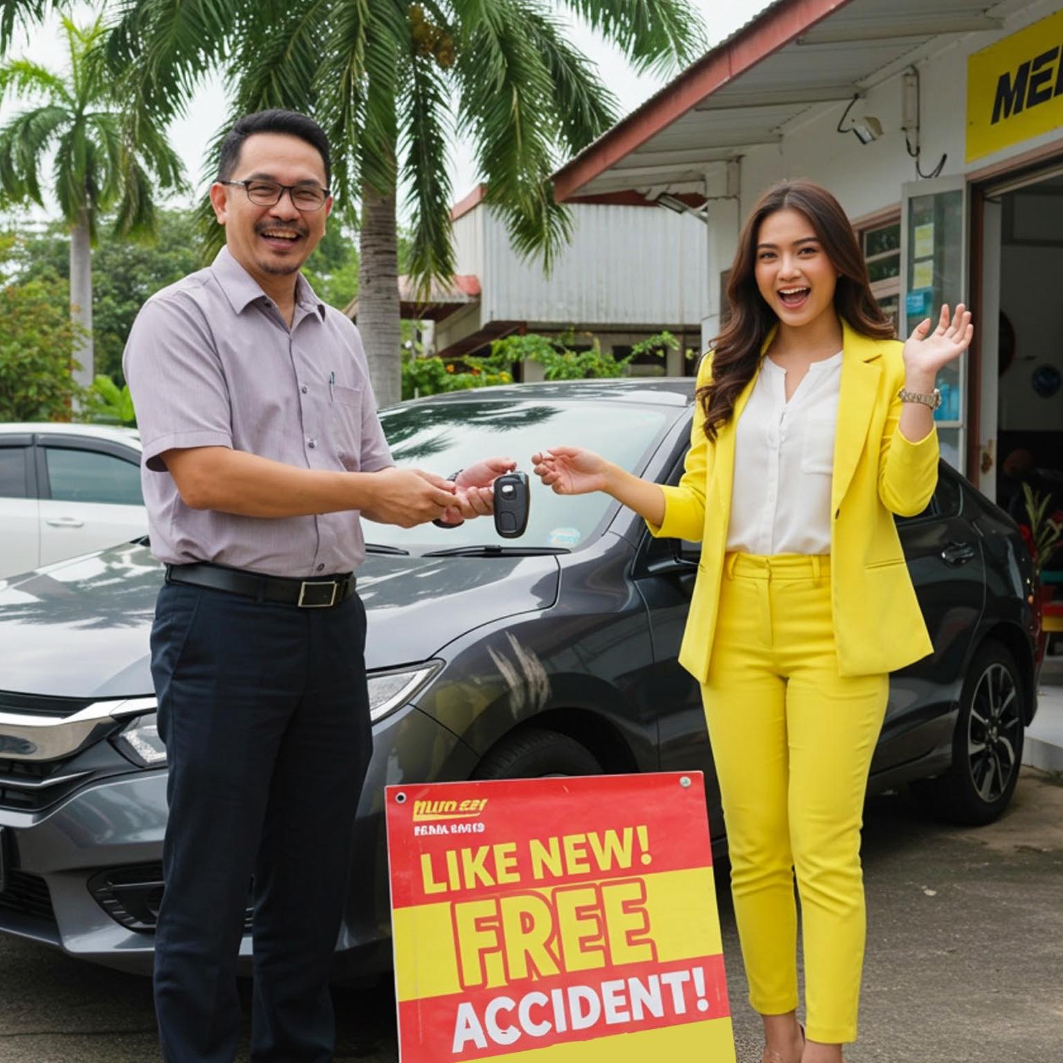 Dekat signboard tulis “LIKE NEW! FREE ACCIDENT!”