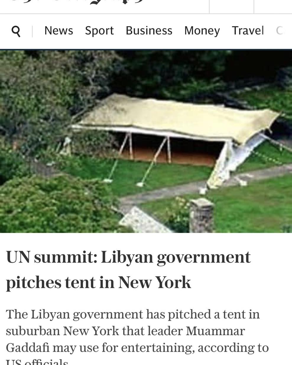 Selepas beberapa tempat menolak untuk menempat khemahnya, akhirnya ia berjaya didirikan di tanah milik Donald Trump di Bedford, New York. Ya, Trump telah menyewakan tanah tersebut kepada Gaddafi.
