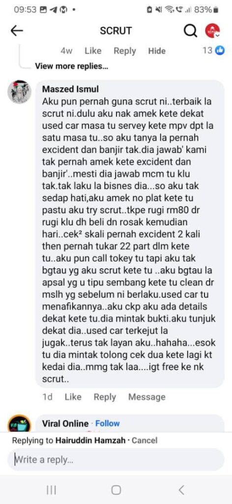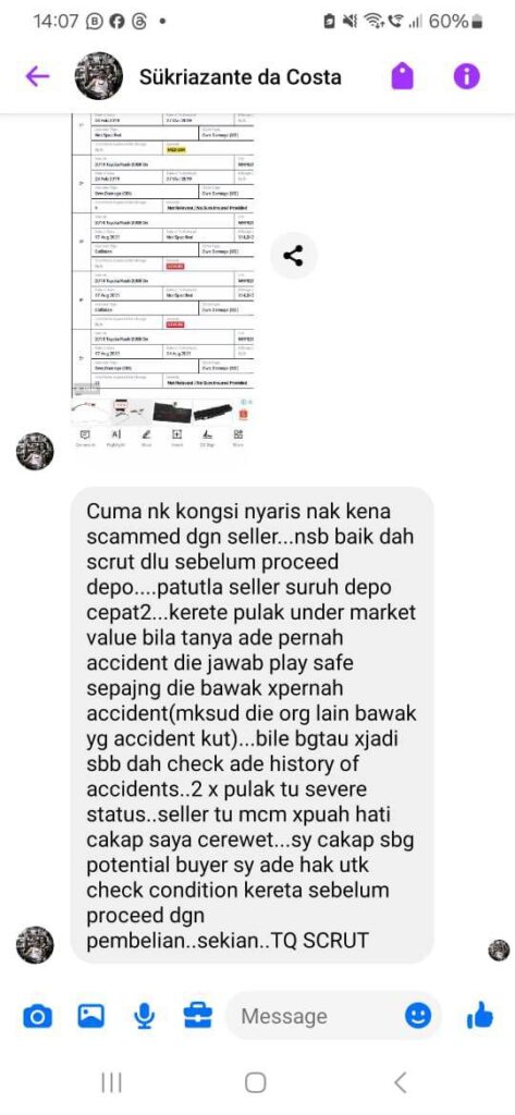 Kita dah bagitahu dah, SCRUT USEDCAR REPORT ni adalah gambaran awal sebelum korang nak beli kereta. Dan yang paling utama adalah laporan kemalangan tu. Kalau dah tiada data, maksudnya kereta tu okaylah.
