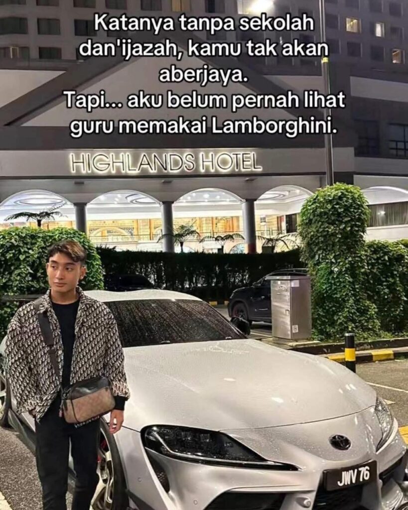 Tapi, kalau nak banding dengan Lamborghini masih jauh beza. Uncle tahu adik ini nak sampaikan, tak belajar tinggi macam jebon pun takpa, tetap boleh berjaya.